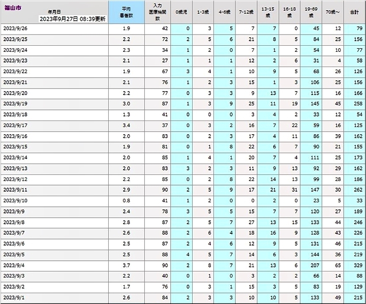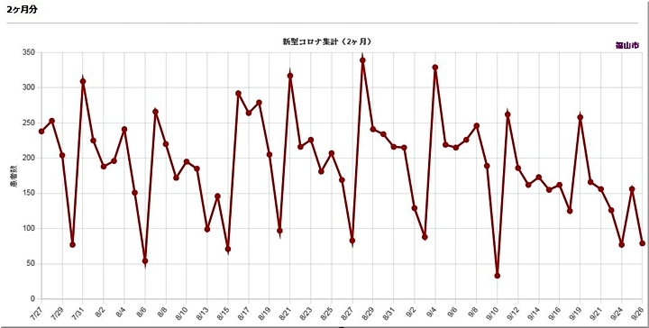 広島県の、ここ2ヶ月間(8〜9月)に限って見てみますと、ほぼ横ばい推移ですネ。福山市の、ここ2ヶ月間の状況も、ほぼ横ばい推移と言えそうですねぇ〜
