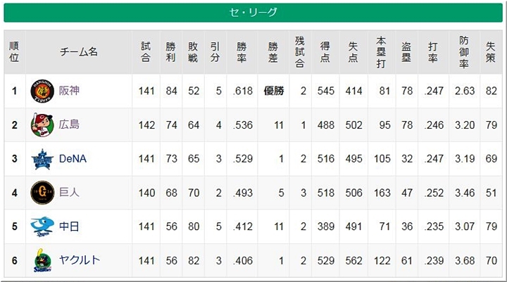 「開幕前の私たちに対する評価は決して高いものではなかった。選手全員が『よし、見とけよ!』と頑張ってくれた」。就任1年目で5年ぶりのAクラスに導いた。だが、CS本拠地開催は、4日のDeNAの結果に委ねられた。「そこはどうしようもない。(選手には)まずは、ゆっくり休んで(CS第1ステージ開幕の)14日に備えてもらいたい」。マツダでは今季44勝26敗2分け。マツダでのDeNA戦も7勝5敗1分け。地元ファンの後押しを受けられるか否か、その差は大きい。(畑中 祐司)