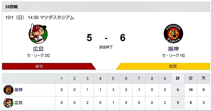 --- 2023/10/01(日)14:00 マツダスタジアム Sportsnavi ---