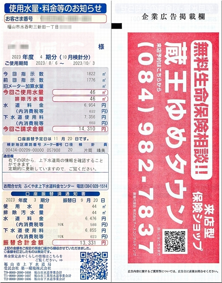 水道検針票の裏面…ヤッとスポンサーが付きましたようですネ(^.-)☆