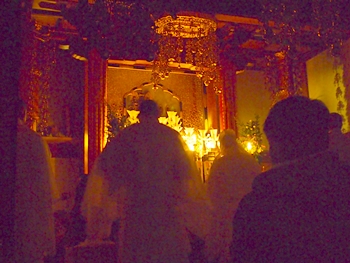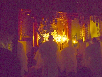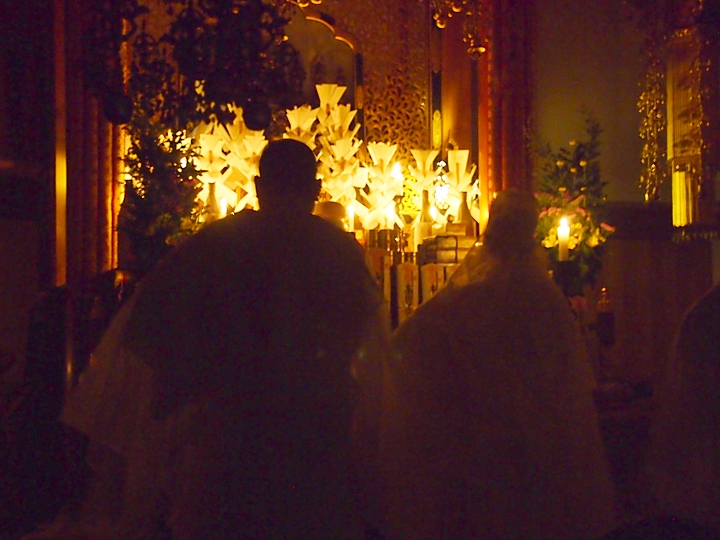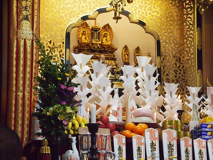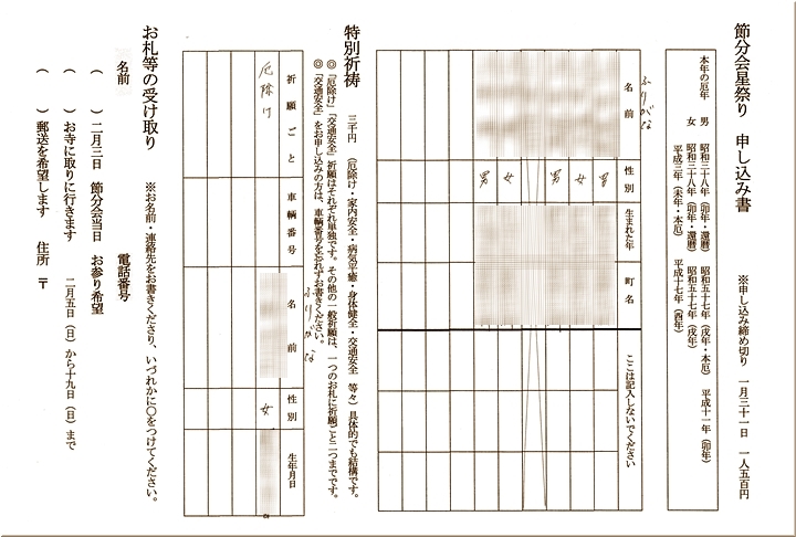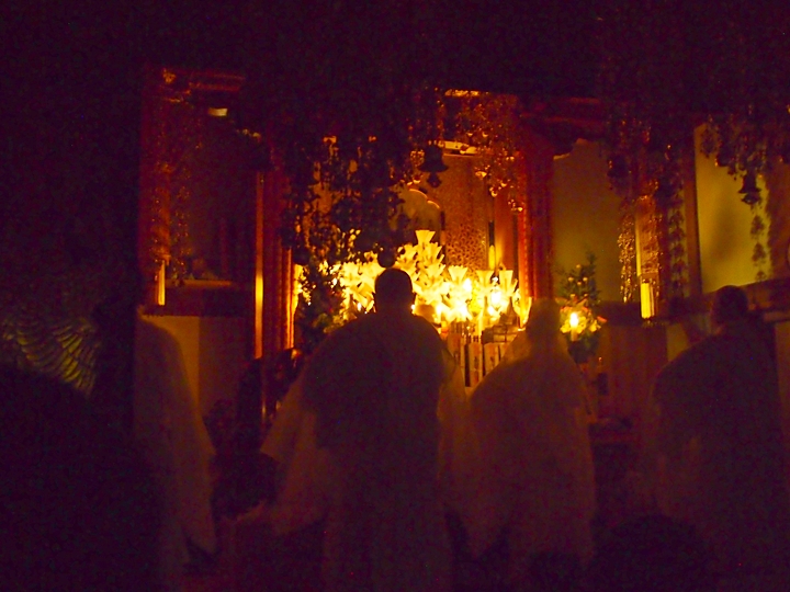 先にお寺に来ておりました嫁さんに、小声で「特別祈祷者の名前の読み上げが無いし、星祭りの方は、参加者のお名前のみの読み上げは、何で?…」と尋ねますと、「事前の申込時に、当日の参加の有無を尋ねられ、当日の参加者が少ないのは、お寺は把握済み。厄除け星祭り≠ニ特別祈祷≠フ名前は、本日15:00からの僧侶の皆様のみで御祈祷法要を行い、その際に、申込者の御祈祷の読み上げは済ませておられるから、夜は、参加者のお名前のみの読み上げにされた…」との事でありました。