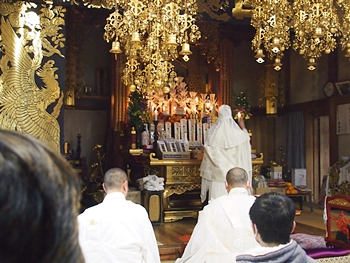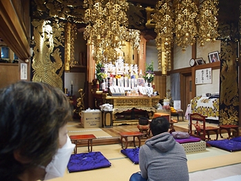 お寺に到着しますと、まず眼に入りましたのが参詣者の方々の靴の数…う〜ん、ヤケに少ない(^-^;
