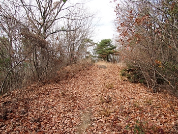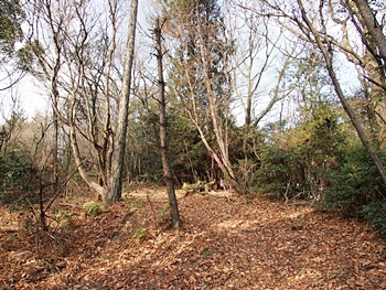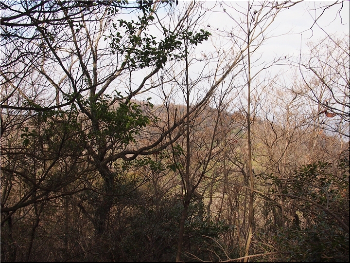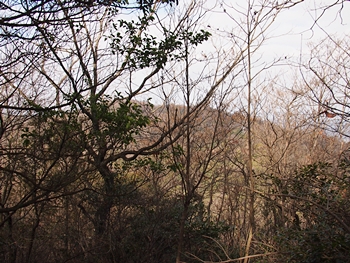 下山の途中、樹木の間から熊ヶ峰山頂が…