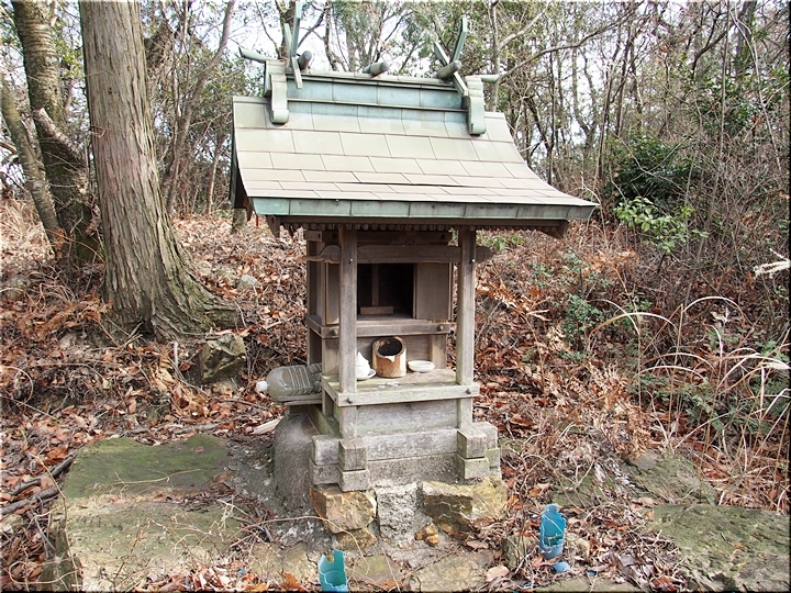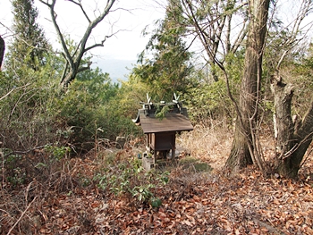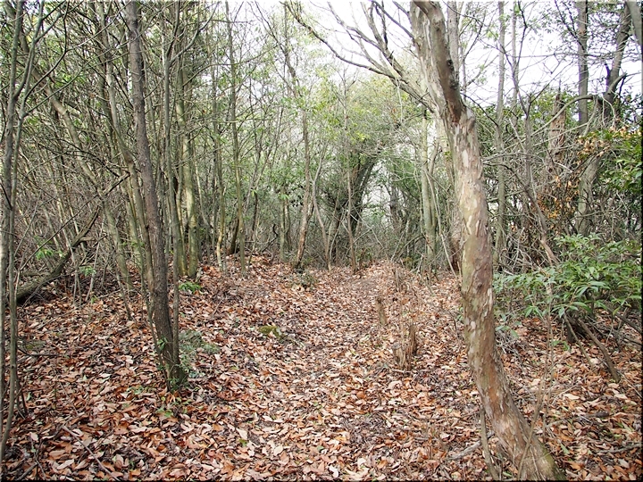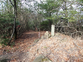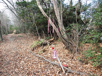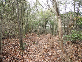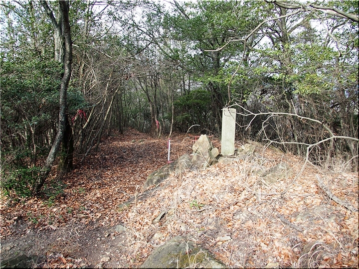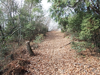 この石碑を通り過ぎますと、下り道が…この道を下って行きますと、今は麓の水呑八幡神社近くに移転されておりますけど、葛城神社跡に向かうのだと思います。