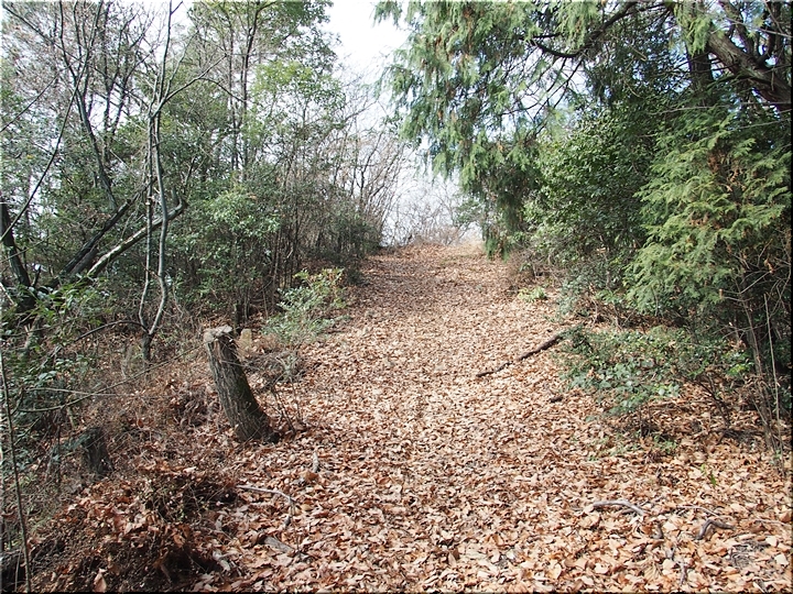 グリーンラインまで下りて来ますと、駐車場側へ渡り、案内板の右側の登山道から登頂です。熊ヶ峰山頂への登山道も、キレイに整備されておりますネ(^-^)//
