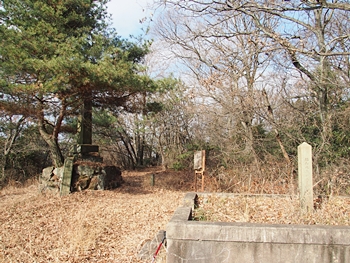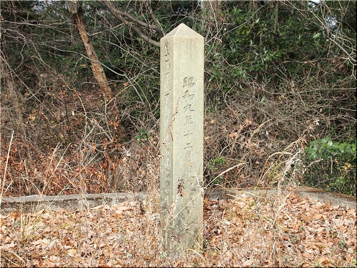 頂には、「葛城山(420M)福山山岳会」の表示板が…その右隣りのコンクリート製の台の中央には、石碑が…石碑には「皇太子殿下御降誕奉祝記念国旗掲揚場」「昭和9年12月建立」と刻まれています。