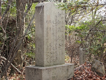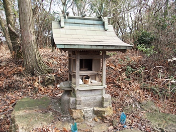 少し下って行きましたら西向きに祠が…また少し下った所に二つの石碑が…いずれも前に赤い鳥居が…