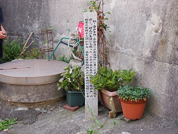小水呑には法界さんが二体ある。荒神さんの境内と清水池のほとりにある。水呑町内には14体あり、後者は町内最古の法界石塔である。延宝2年(1674)5月1日の造立。