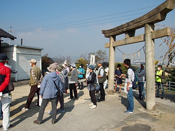 高浦八幡神社では、境内には上がらず古道から社を眺めながらの説明でありました。