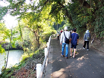 高浦八幡神社≠ゥらは、トンコ川≠ノ向かいます。トンコ川≠烽ワた古道から見下ろしながらの説明でありました。