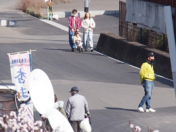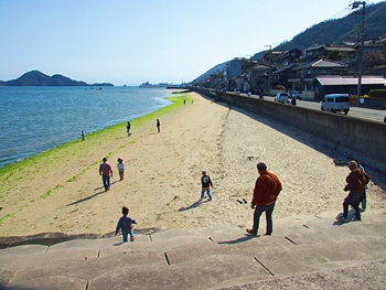 杏まつり℃桙フ臨時駐車場でありますあんず広場≠ワで戻って来まして、海岸沿いを覗いてみますと、お子様連れのご家族が、陽気な温かさに誘われて砂浜歩きを楽しんでおられます(^.-)☆