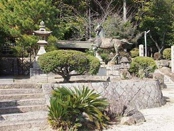 入口には旧社名の「武ノ宮八幡宮」社号標とともに「吉備高島宮址」碑も建っています。けれど、言い伝えによると、高島宮址はこの地ではなく、さらに北へ行った才の峠近くの宮原にあったという事です。