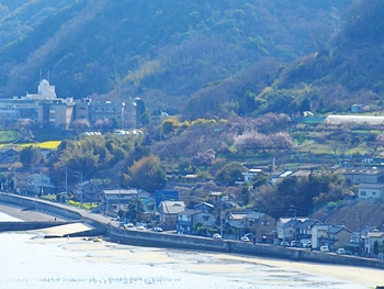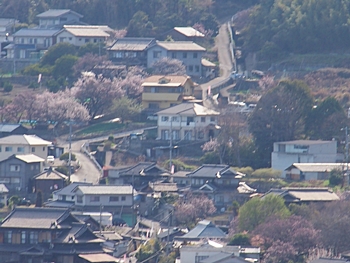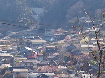 こぅして、先ほど歩きました杏ロードを眺望しますと、ピンクの杏がイィ景観であります。満開でしたら、もっとキレイかも…
