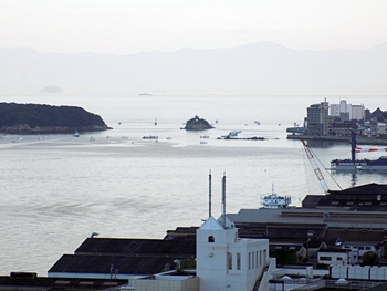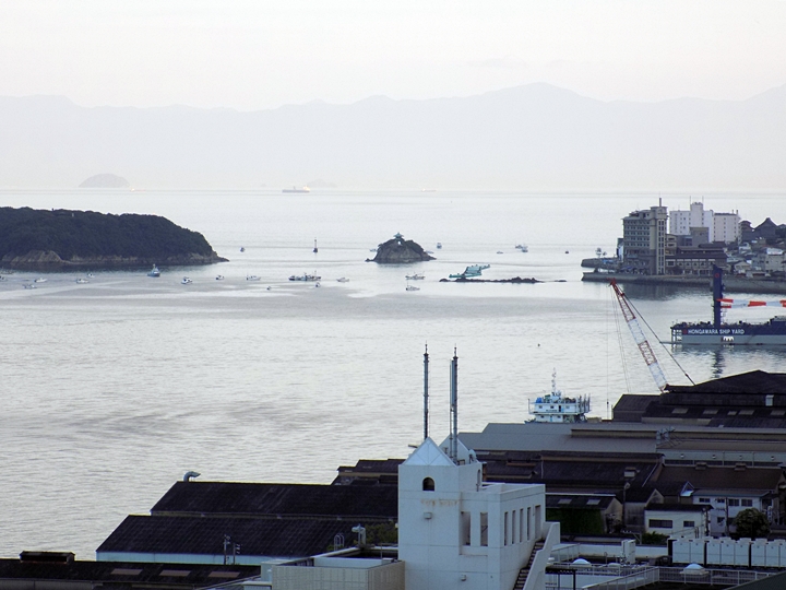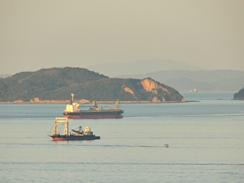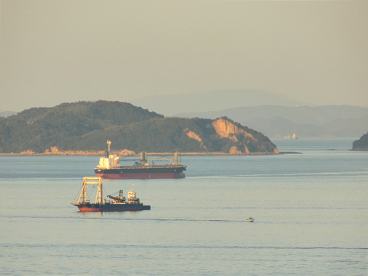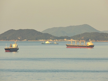 海上には、西日を浴びて、荷積み待ちの貨物船が数隻。穏やかな瀬戸内のノンビリとした光景ですけど、こぅした景観を眼にしておりますと、心まで穏やかに…イィですねぇ(^-^)//"