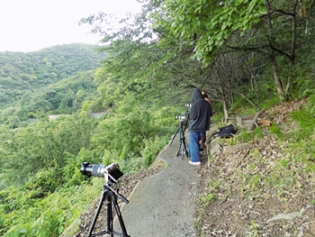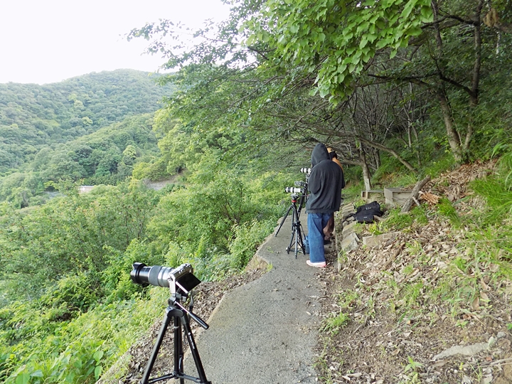 GONsanも三脚をセットしカメラ・リモートコード等を設置し、とりあえず事前準備は完了です。携帯可能な小さな折りたたみイスを持参していますので、それに座り一服しておりますと、男女の若者が来訪。