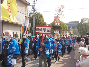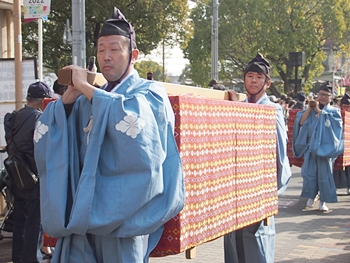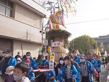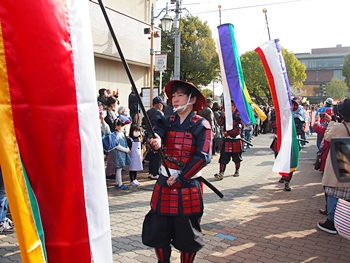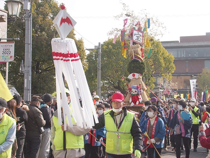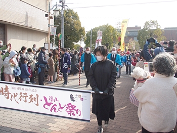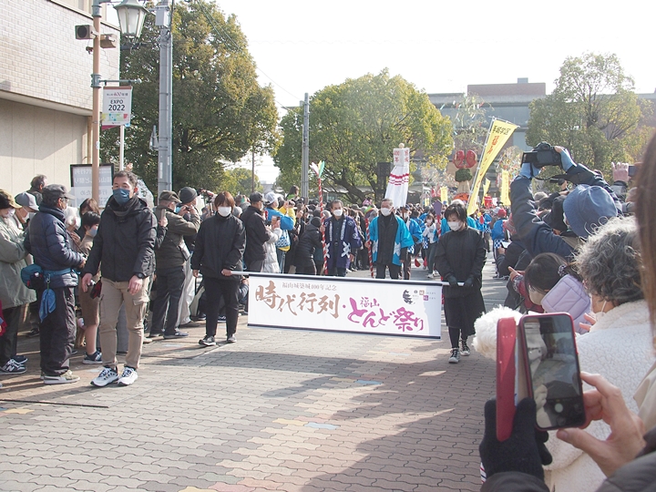 当日は、福山とんど祭り≠燗ッ時開催し、時代行列と共に同じコースを練り歩きとなりました。