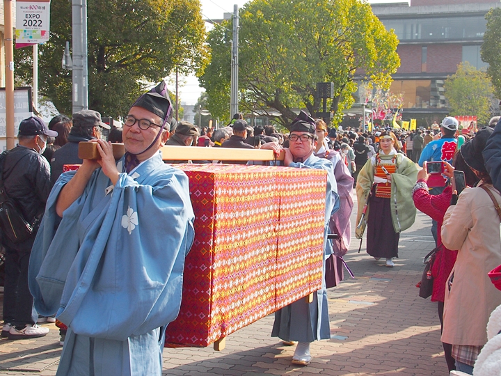 福山城築城400年にあたり,記念事業,福山城400年博のフィナーレとして福山城にゆかりのある城主やゆかりの先人の時代行列を当時の衣装で再現し,福山のまちを練り歩きます。