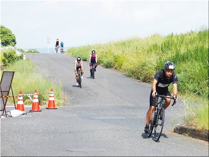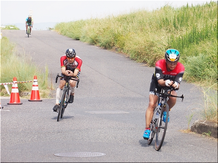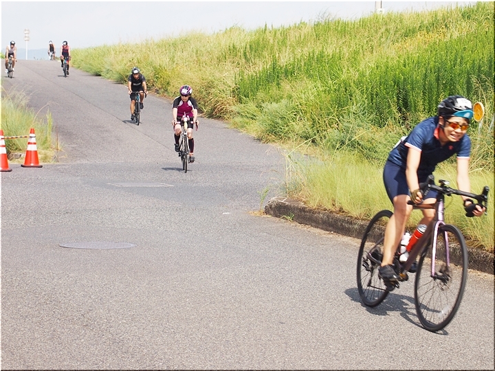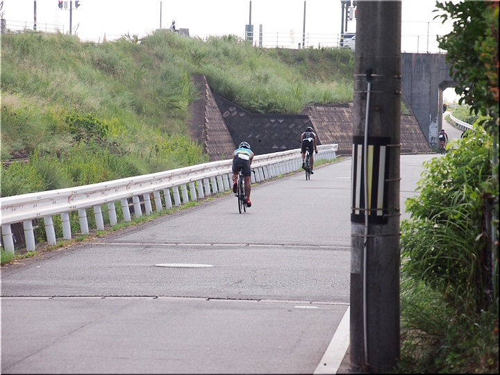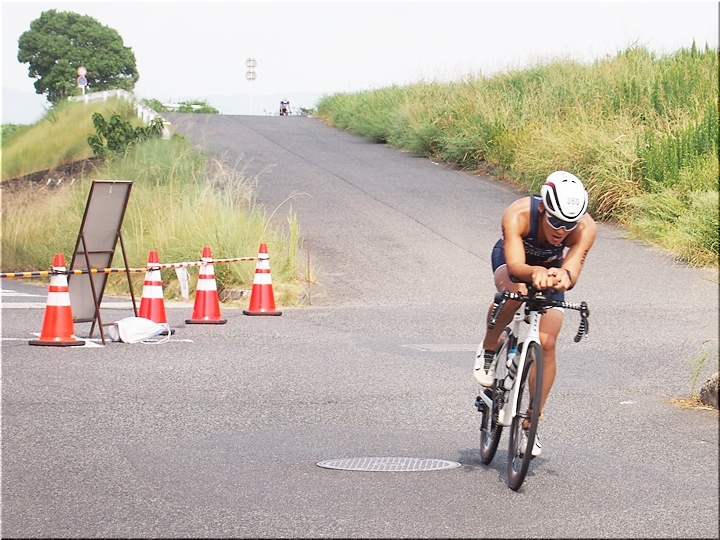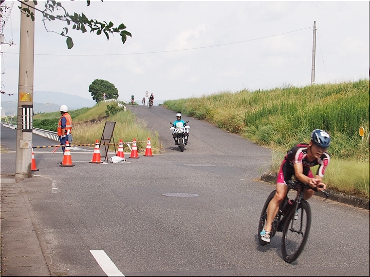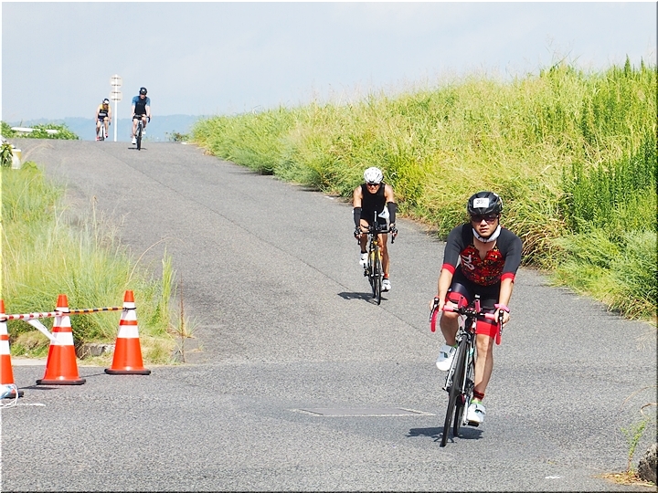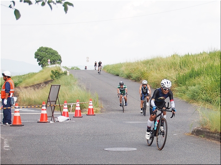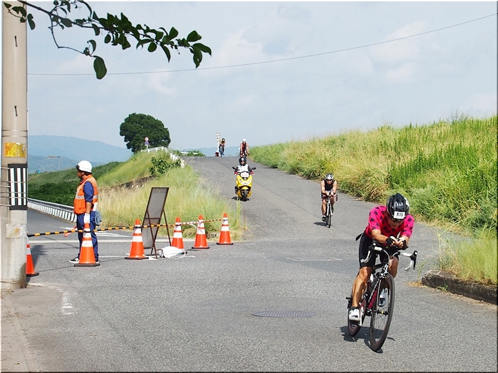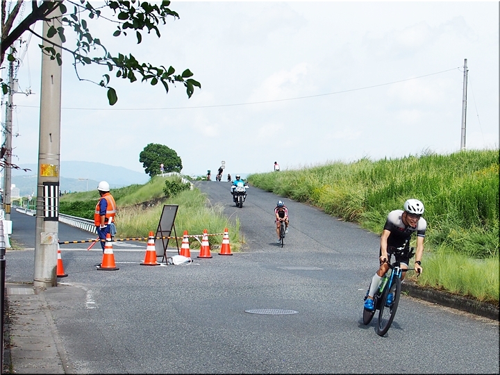 通過して行かれます選手の皆様のお顔は、苦痛で歪んでおられます方…ポーカーフェースで無表情の方…前車輪の少し先を見つめながら黙々と走行の方…カメラを向けますと、チャンとポーズをとって頂き、通過時にニヤッと笑顔で通過されます方…土手下に下って来ます時にはリラックスモードなのに、カメラを向けますとシャキッと戦闘モードに切り替わる方…と、実に様々ですから、観戦していますと実に楽しいですネ(^.-)☆