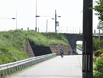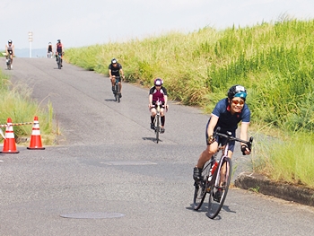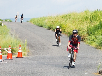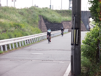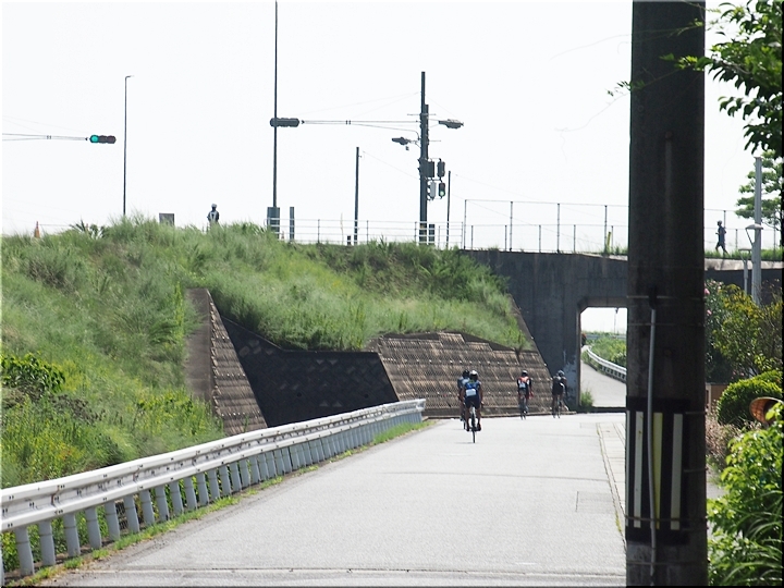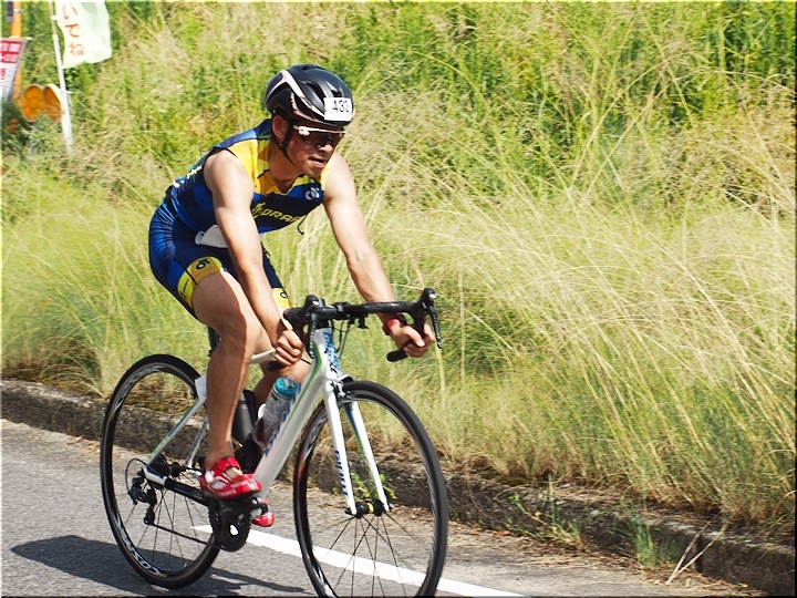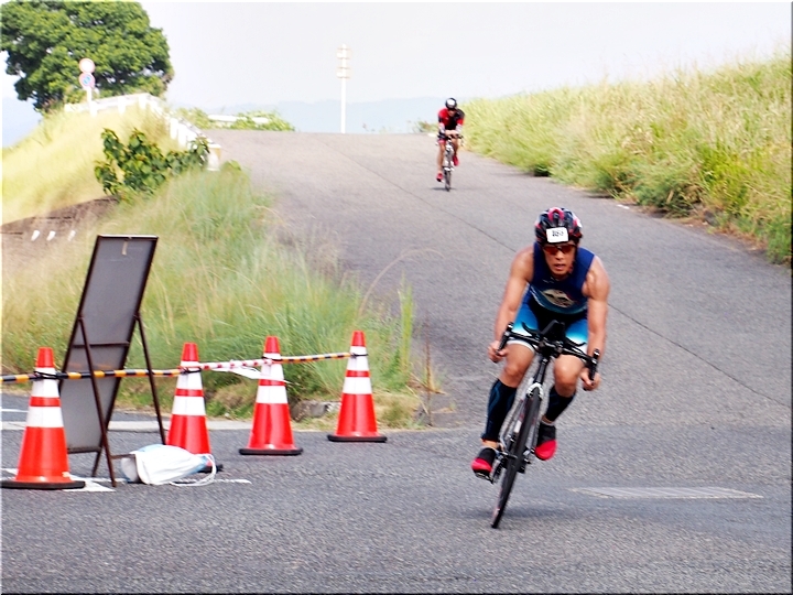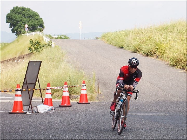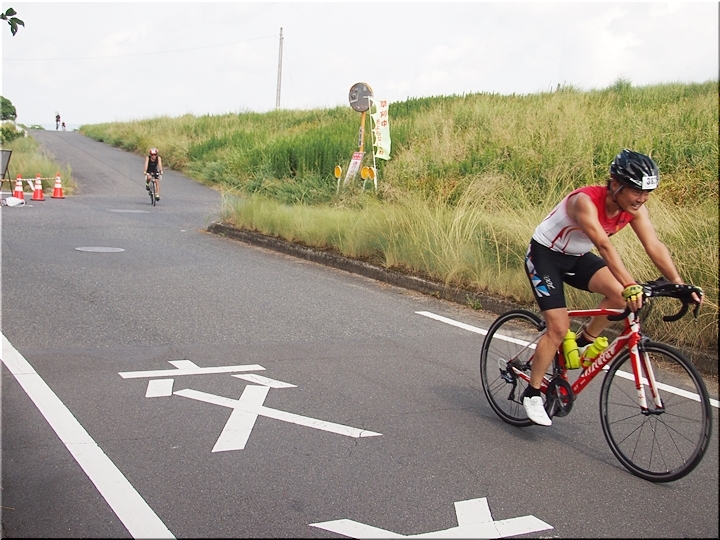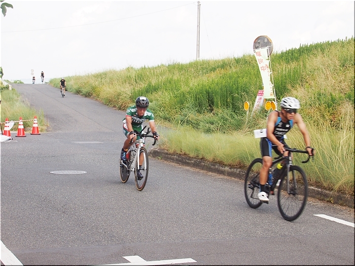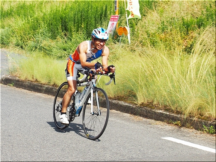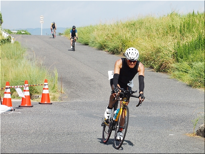 通過して行かれます選手の皆様のお顔は、苦痛で歪んでおられます方…ポーカーフェースで無表情の方…前車輪の少し先を見つめながら黙々と走行の方…カメラを向けますと、チャンとポーズをとって頂き、通過時にニヤッと笑顔で通過されます方…土手下に下って来ます時にはリラックスモードなのに、カメラを向けますとシャキッと戦闘モードに切り替わる方…と、実に様々ですから、観戦していますと実に楽しいですネ(^.-)☆