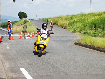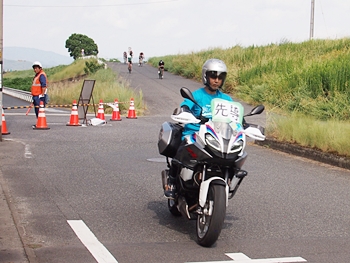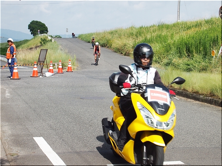 暫くしますと黄色のバイクが…前部には大会関係車輌≠フ表示が…