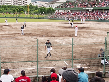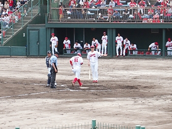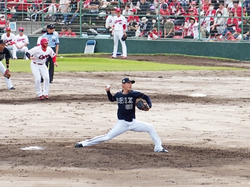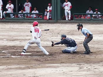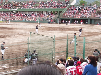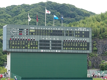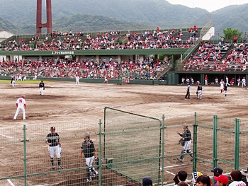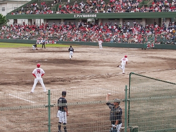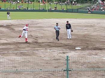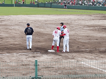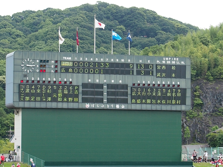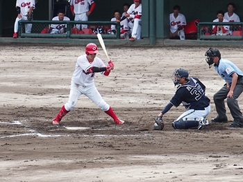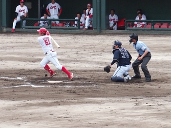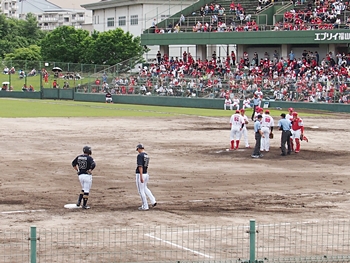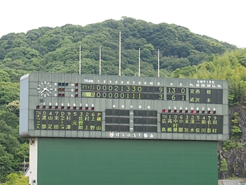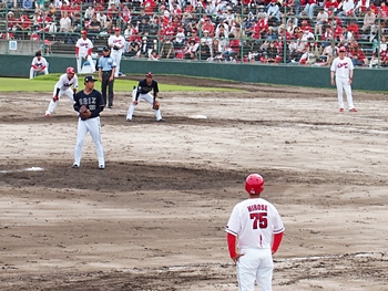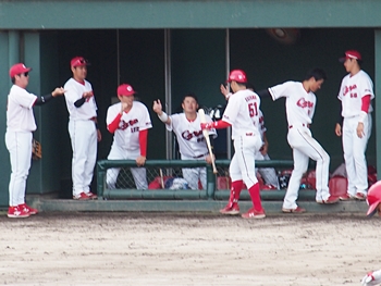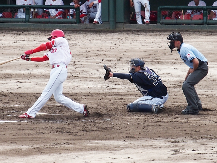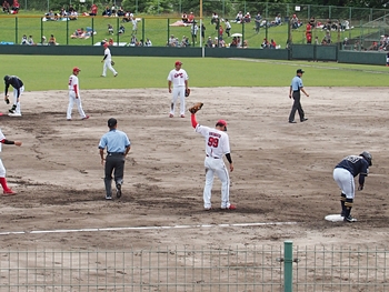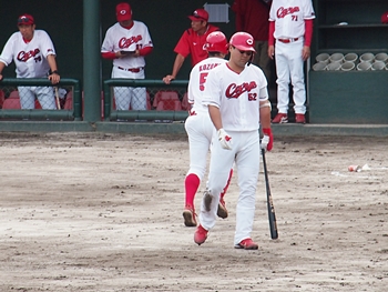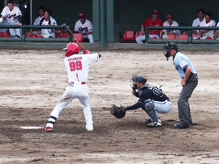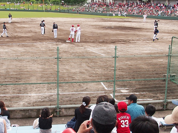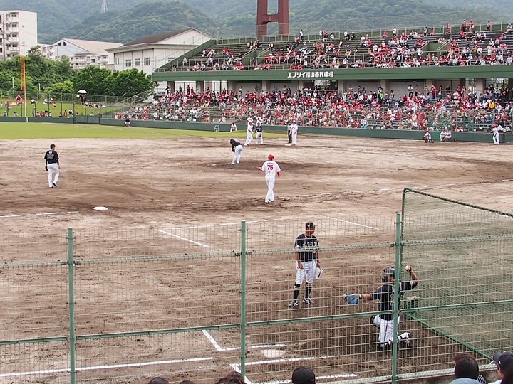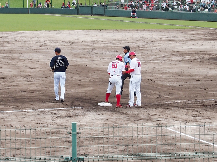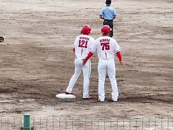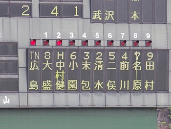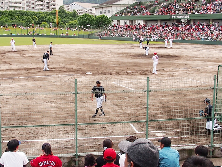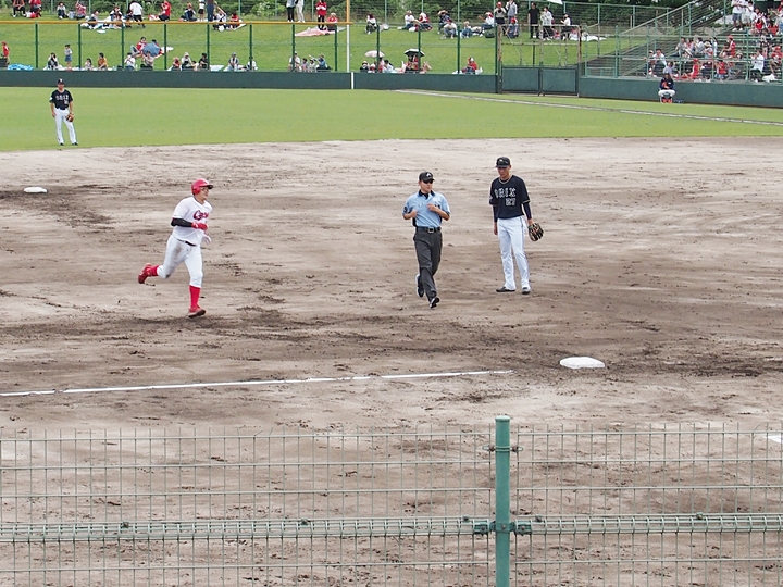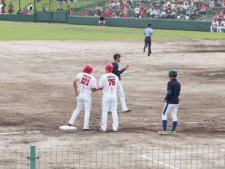 名原:センターへの三塁打 3塁、田村:ファーストゴロの間に三塁ランナー名原が本塁生還 広2-9オ 1アウト、大盛:内角高めのストレートを打つもセンターフライ 2アウト、中村健:行木→代打:中村健 サードゴロ 3アウト
