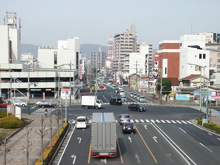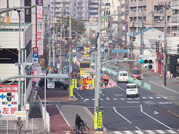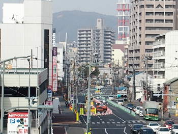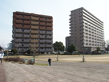 陸橋からは、座床・四ツ樋周辺を眺望です。リーデンローズの建物の横に駐車場が隣接ですけど、この辺りが古座床≠フようですネ。