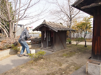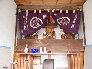 航海守護の神である。建立時期は明確では無いが、灯籠には明治13年の銘がある。ここは江戸時代末まで舟入番所があった場所である。おそらくその番所跡に船乗りや漁民たちの安全を祈るために港であった入江脇に造られたものと考えられる。金比羅信仰が盛んであった当時、ここから四国へ船出したこともあったであろう。
