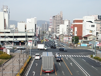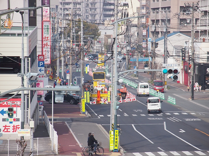 次は、ポートプラザ日化〜リーデンローズ間を繋ぎます陸橋上に向かいます。