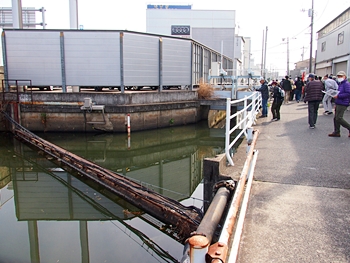 舟入番所跡を横目に大山樋門・大山ポンプ場≠ヨと向かいます。