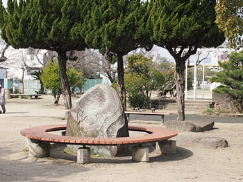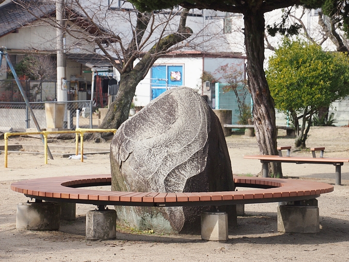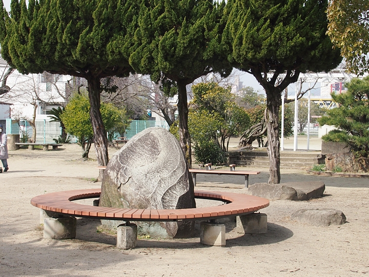 公園内中央部には、ベンチで囲まれた中にも石が設置されていましたけど、これは何なのでしょうネ。モニュメント(オブジェ?)なのかも分かりませんけど、何にも説明板がありませんから…