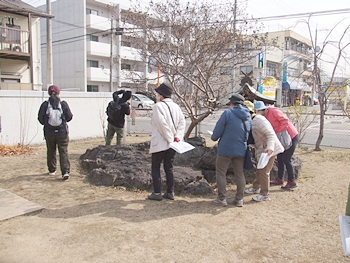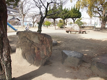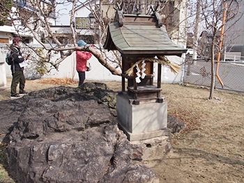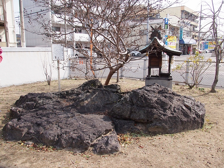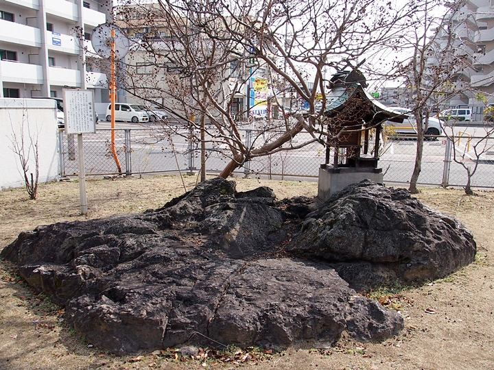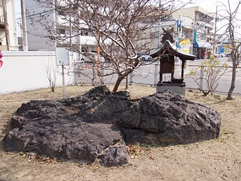 昔はもっと大きな岩でしたようですけど、経年とともに風化により、現在の大きさとなりましたようです。此処が埋め立て前には海でした時代の岩礁が残存と言う事なんですねぇ〜