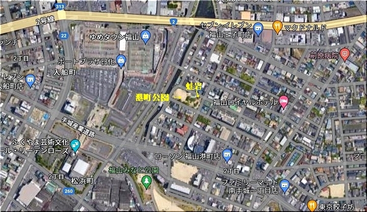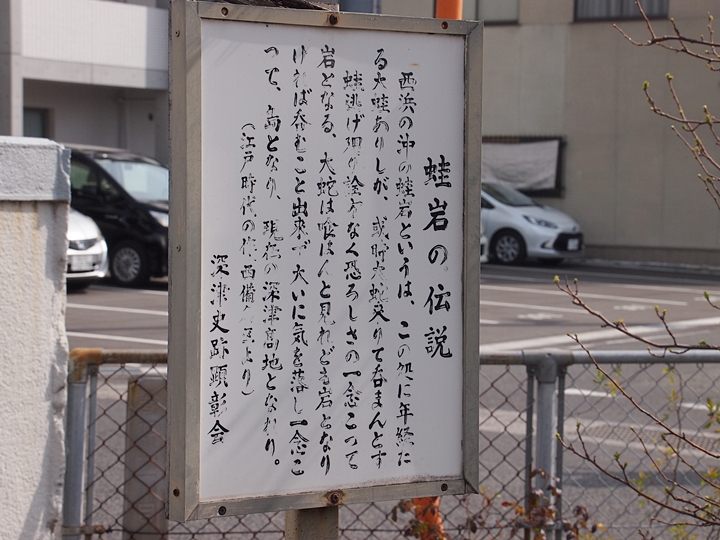 ◆蛙岩(港町公園に残る深津高地と神宮皇三后の伝説)
