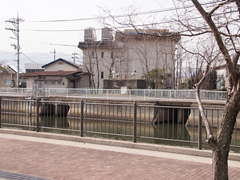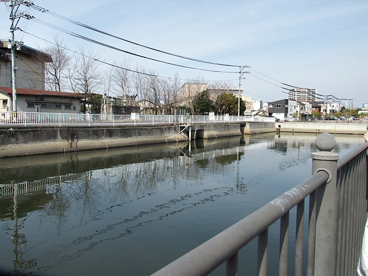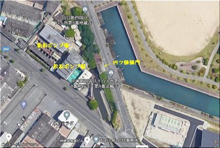 ここは福山南部干拓地でも最も低い場所であり、その為この場所に干拓地にたまった水を拭くための樋門が造られた。樋門が四つあったので四ツ樋≠ニいう。