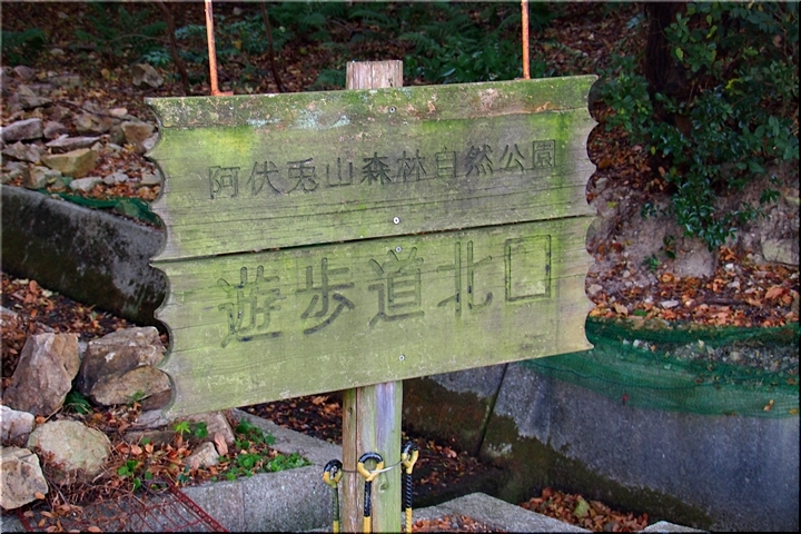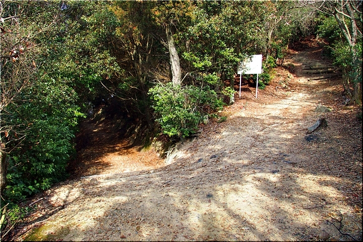 尾根歩き遊歩道≠阿伏兎観音方向に進んで行きますと、三叉路が…そして、その傍らには案内標識も。