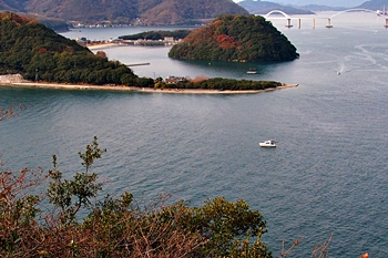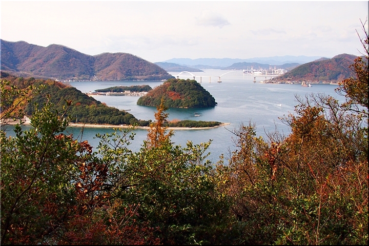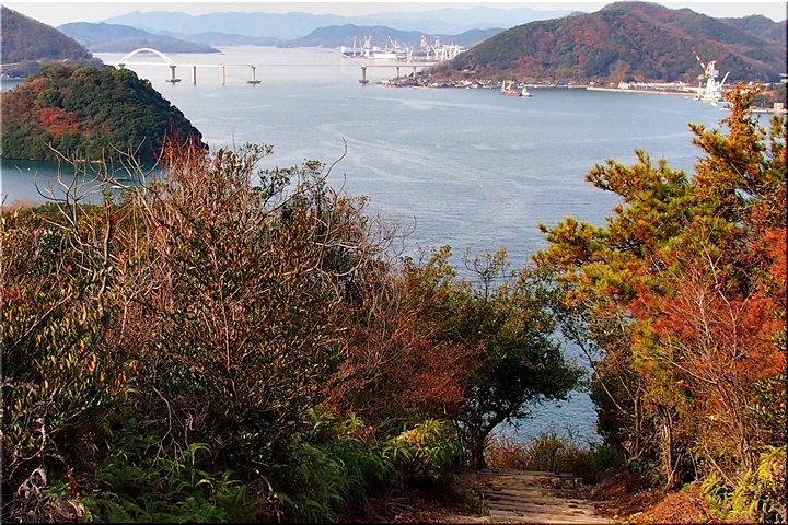 暫く下って来ましたら、正面に矢ノ島≠ナ、その後方に内海大橋≠ェ。