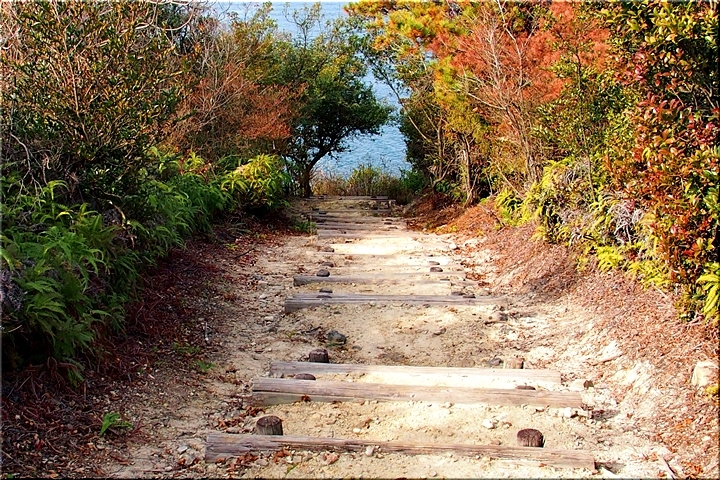 今まで遊歩道北口≠ヘ一度も歩いた事がありませんから、今回は遊歩道北口<求[トで海岸沿いに下り、遊歩道西口≠ゥらまた、この尾根歩き遊歩道≠ノ戻って来る事に致します。
