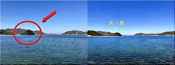 また、田島のすぐ隣にある矢ノ島。能登守教経が射放った矢が、海を超えて島に突き刺さり根がはったのが島名の起こりと。