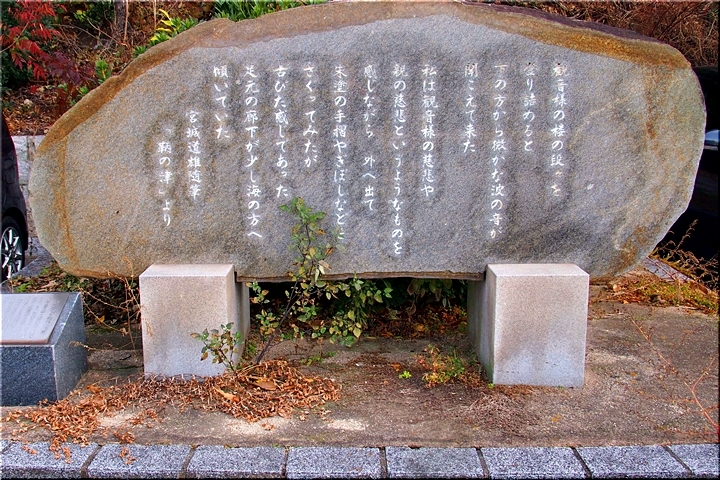 「遊歩道北口」から海岸沿いを進みますと、スグにこんな歌碑が…