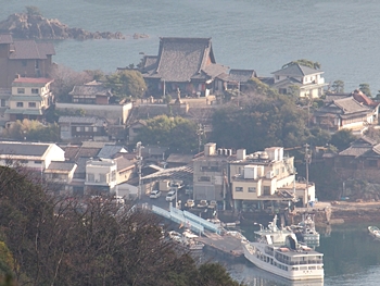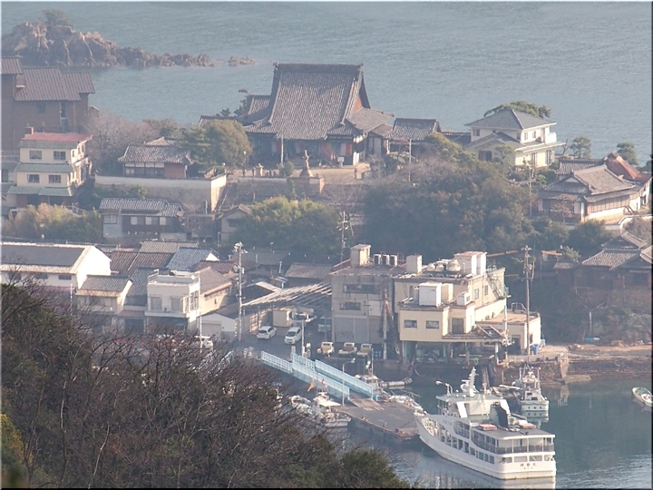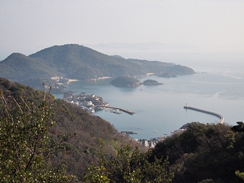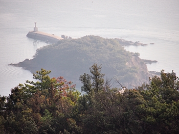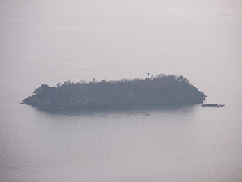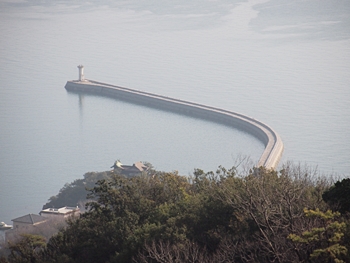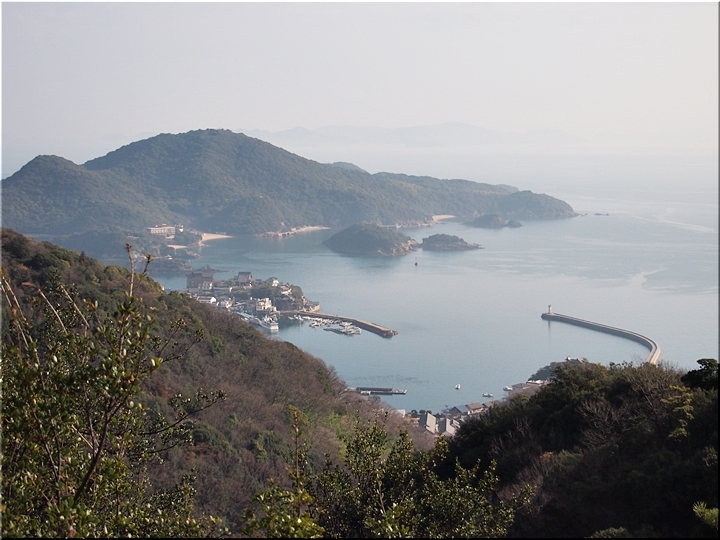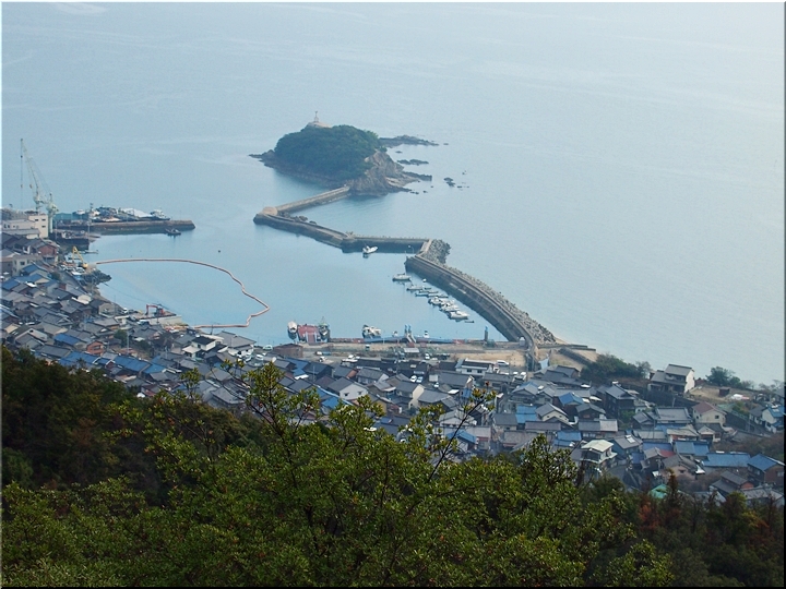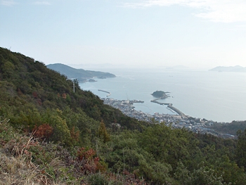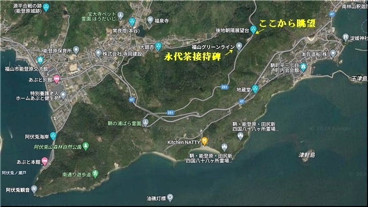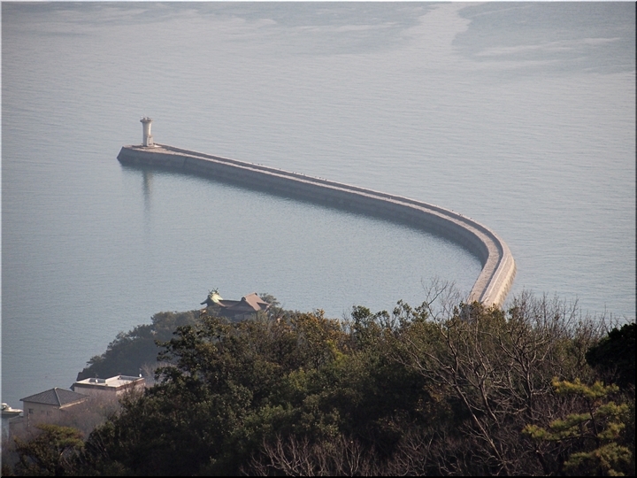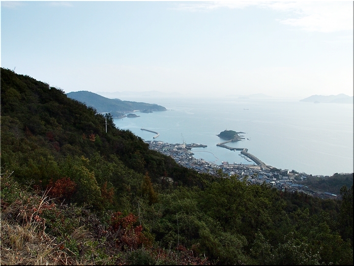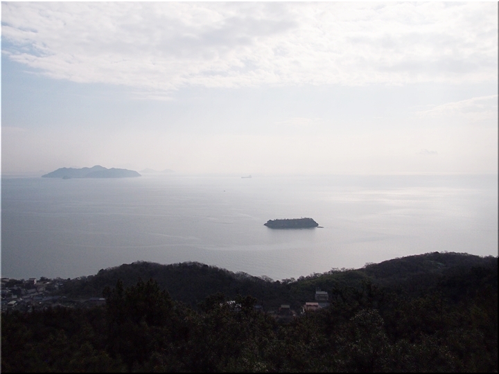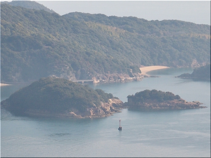 薬師地蔵&茶接待所跡¢Oのグリーンライン際から瀬戸内側を眺望しますと、眼下の津軽島≠フ北側には波止と繋がった玉津島≠ェ…これまた、イィ景観であります(^.-)☆