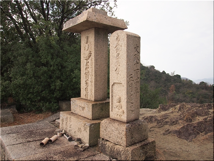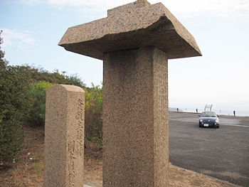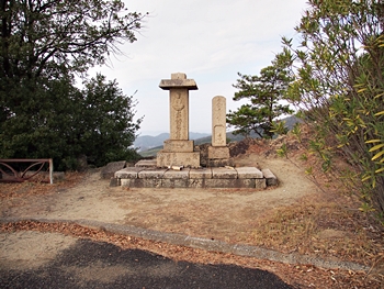 グリーンラインの一番南にある小さな展望台、少し北に新しい展望台もでき、今では立寄る人は少ないのではないだろうか。展望台というより駐車スペースと言った方がいいような場所の隅に二基の石碑が立っている。