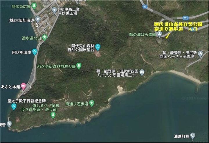 位置的には、左に進みますと室浜&面ですから、右方向が阿伏兎観音方向です。案内標識も、当然の事ながら「南歩道 →」でありました(^.-)☆