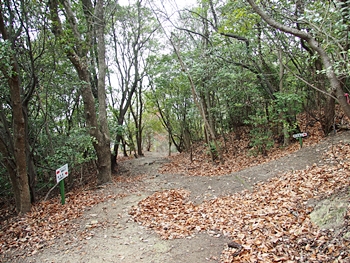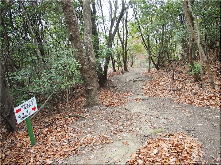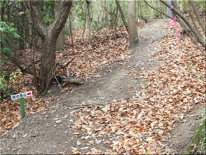 右に進みますと、尾根歩き遊歩道≠ナ阿伏兎山&向へ、左に進みますと南通り遊歩道≠ナ阿伏兎観音&向へ。