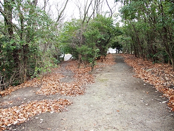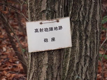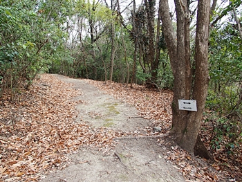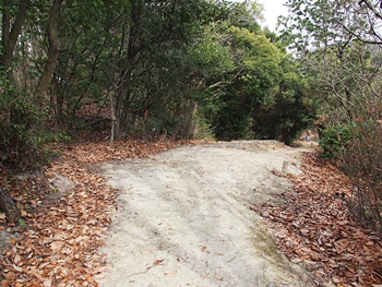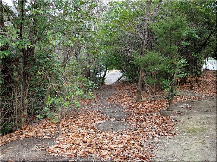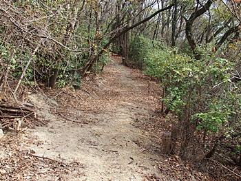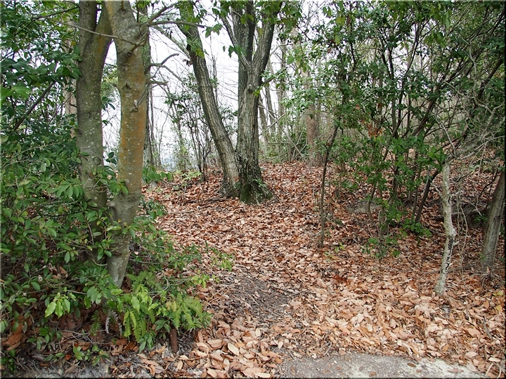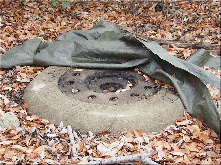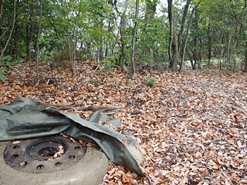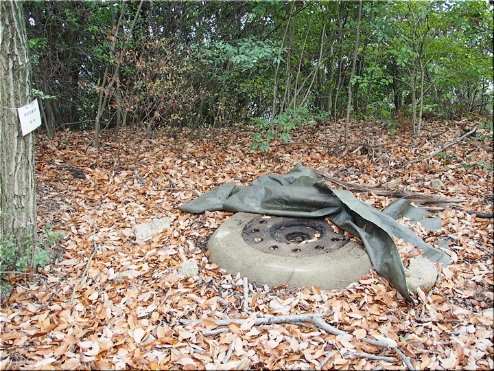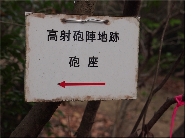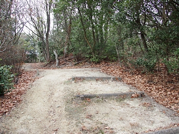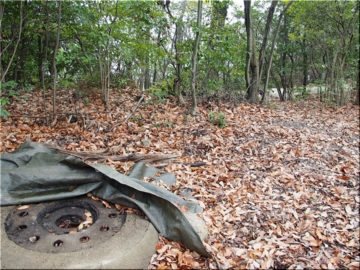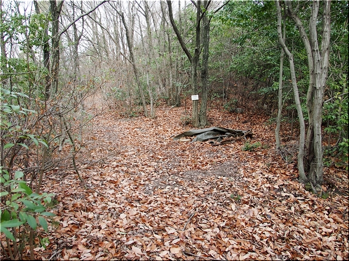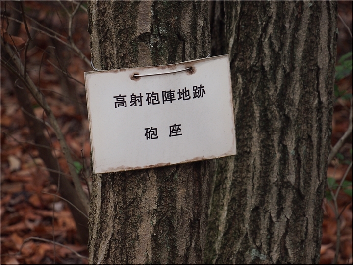 暫く進みますと高射砲陣地跡(砲座)%口までヤッて来ました。以前には、この入口に「高射砲陣地跡(砲座)→」の案内標識が設置されていましたのですけど、ふ〜ん、無くなってますネ。