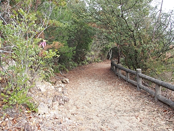尾根歩き遊歩道≠フスタート地点遊歩道東口≠ノ戻りますには鞆の浦ばら霊園%烽通りますのが近道なんでしょうけど、右に進み遊歩道の歩行続行です(^.-)☆