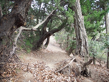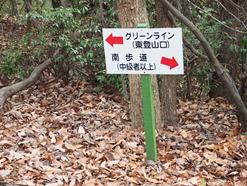 尾根歩き遊歩道≠ノ戻りますと、左方向の遊歩道東口≠ヨ。