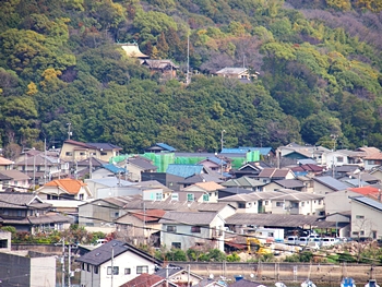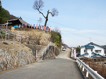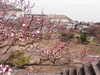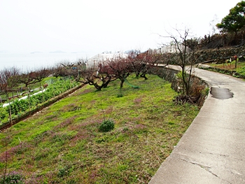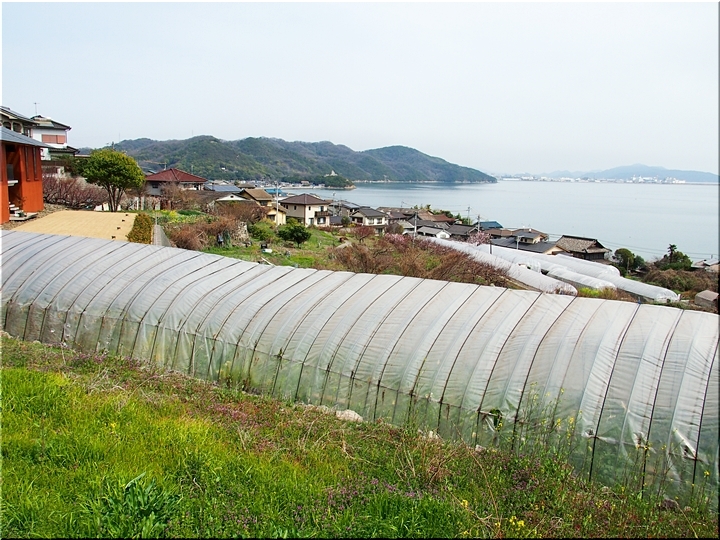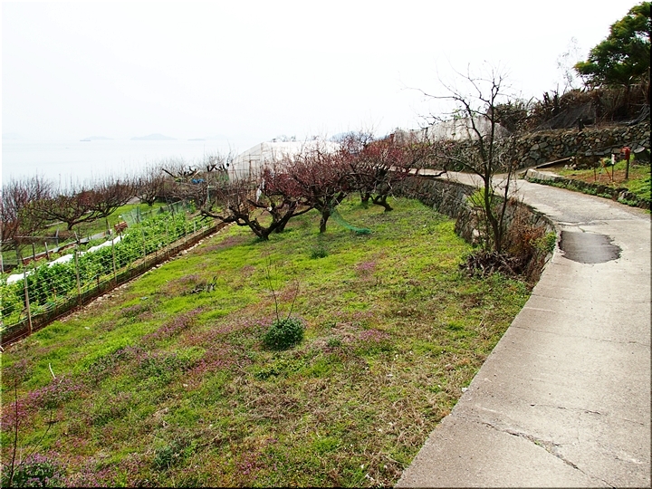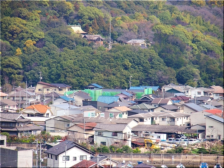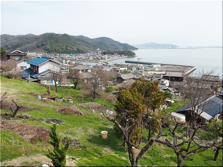 暫し立ち止まり、正面方向に笠岡諸島、左手に武ノ宮八幡宮(田尻八幡神社)、右手方向に仙酔島を、今一度眺望です(^-^)//"