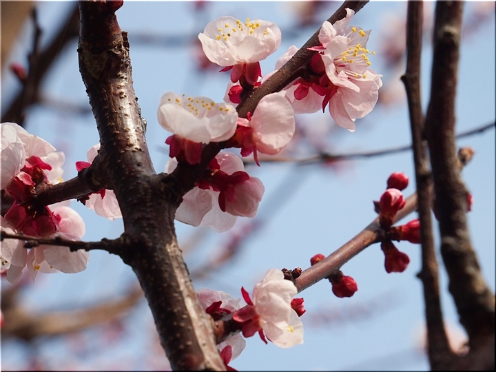 こぅして画像に納めますと、華やかさの面ではサクラより劣るのかも分かりませんけど、杏の花も仲々キレイ(^.-)☆
