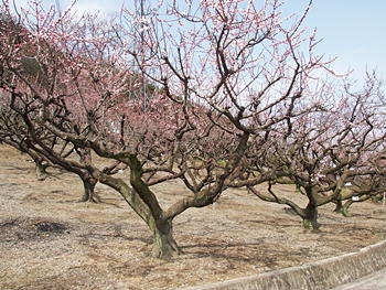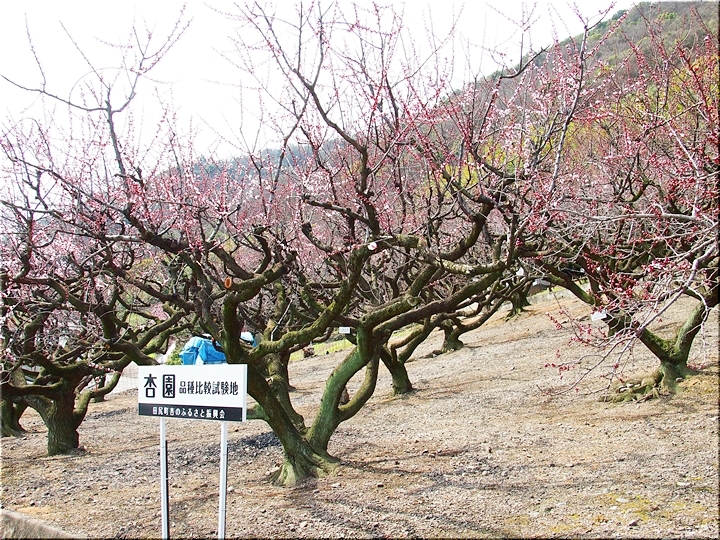 杏園品種比較試験地¢Oでの眺望を終えますと、車を駐めていますあんず広場≠ヨと戻ります。