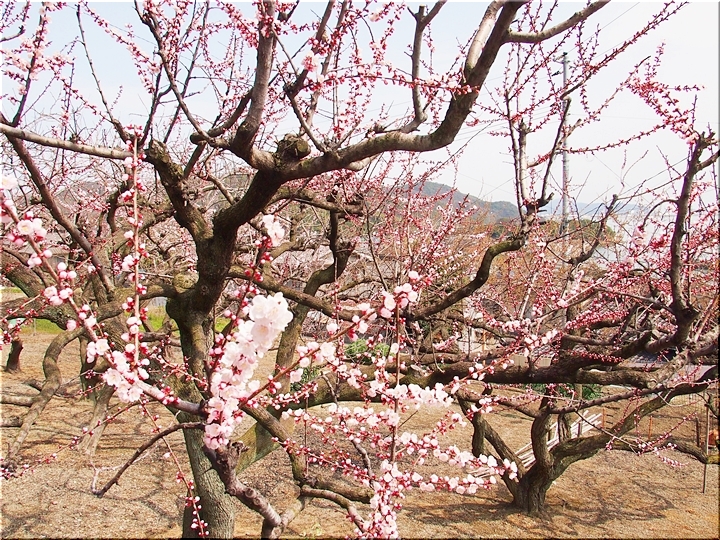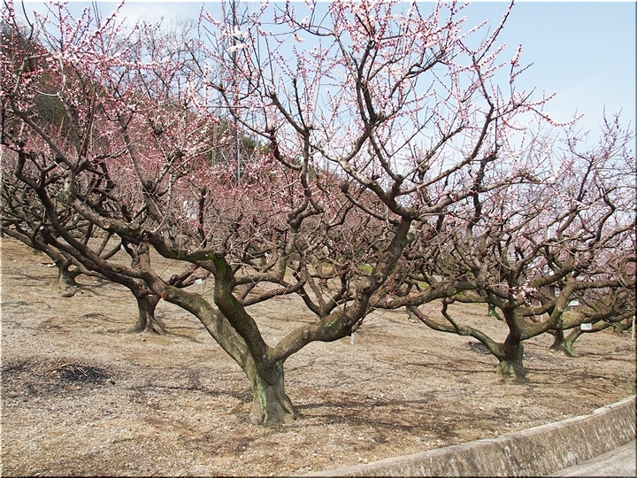あっちをキョロキョロ、こっちをキョロキョロしながらノンビリと歩行でしたけど、円明寺下を通り抜け、杏品種比較試験地まで戻って来ましたネ。ここが杏の花で満開でしたら、さぞキレイなんでしょうに…