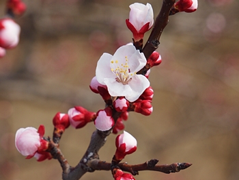 それにしましても、ご覧の通り寂しい杏ロードです。いつもでしたら、杏まつりの後で訪れましても、こぅして散策を楽しんでおられます方々のお姿はチラホラと見掛けますけど、今回は、あまりにも杏の開花が遅れていますから…
